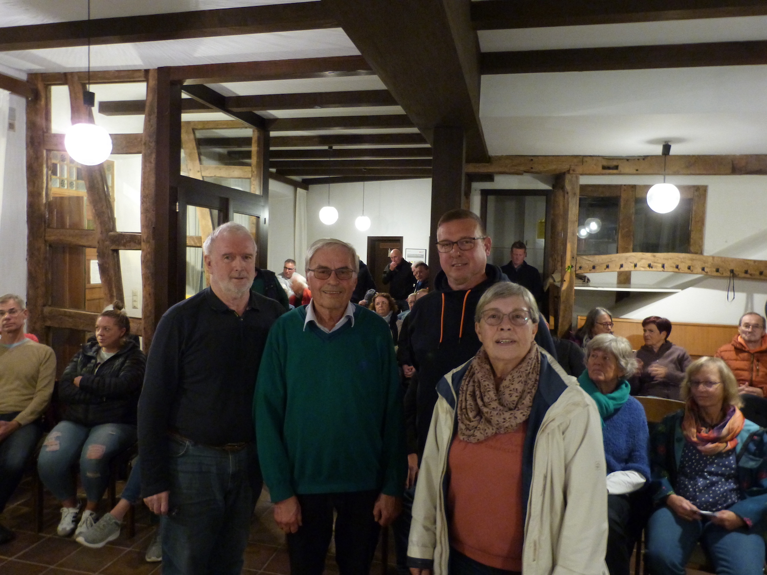 Nach dem Rücktritt des geschäftsführenden Vorstands hat sich in der außerordentlichen Mitgliederversammlung des Vereins am 6. Oktober ein neuer Vorstand gefunden. In der  überaus gut besuchten Versammlung  im Pfarrheim ist eindrucksvoll deutlich geworden, wie groß das Interesse am Weiterbestehen dieses Vereins ist. So ging  die Wahl eines zu einem neuen Vorstand zügig und ohne Gegenstimme über die Bühne. Als Vorsitzender hat Bernhard Knorr noch einmal  das Ruder übernommen. Er hat den Verein 1988 mitgegründet und war schon viele Jahre dessen Vorsitzender. Ihm zur Seite steht Michael Bell als sein Stellvertreter, der seit zehn Jahren die Internetseiten des Vereins sowie auch die des Dorfes betreut. Die Kasse hat Josef Erhardt übernommen, und als Schriftführerin fungiert seine Frau Eugenie. Nun heißt es, unverzüglich an die Arbeit zu gehen und als Erstes dem Verein  wieder aus den Negativ-Schlagseiten zu verhelfen. In der konstituierenden Vorstandsitzung, an der auch Ortsvorsteher Jürgen Werf teilnahm, war man sich geschlossen einig, dass ab sofort wieder Ruhe, Frieden und vertrauensvolle Zusammenarbeit im Verein angesagt sein soll, und das soll auch im Umgang mit anderen Gremien des Dorfes, insbesondere dem Verein „Dorfgemeinschaft Zukunft“, mit dem es so viele Gemeinsamkeiten gibt, gelten.