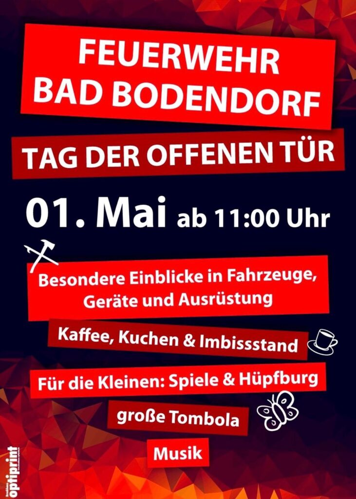 Die Feuerwehr Bad Bodendorf öffnet am 1. Mai 2026 ab 11:00 Uhr ihre Tore des Gerätehauses in der Moselstraße für einen erlebnisreichen Tag der offenen Tür. Alle Einwohnerinnen und Einwohner des Kurortes sowie Interessierte sind herzlich eingeladen, das Gelände der Feuerwehr zu erkunden und an den vielfältigen Aktivitäten teilzunehmen.